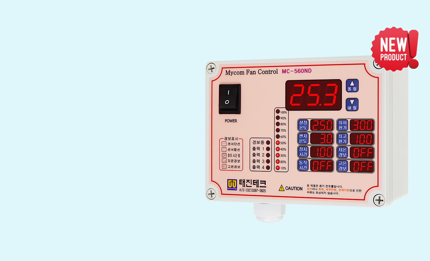 ICT 스마트 제어 (PC, 스마트폰)경보 시 문자발송(별도의 경보기 설치 불필요)경보 시 전화로 알림 (KT 전화선 필요없음)실시간 온도 및 누적 데이터, 차트보기, 엑셀 다운로드기능스마트폰 또는 PC에서 설정 / 제어 가능휀 무단제어 기능속도 휀 출력 3개 (3CH) 기능각 채널당 3KW 용량타이머 기능 (ON / OFF 시간 설정)FAN1, FAN2, FAN3 개별설정습도 값 표시 (제어는 안됨) 옵션고온 / 저온 경보기능 (1채널에서만 설정함)2차 릴레이 출력 기능 3단계(AC 220V 출력)알람 릴레이 사용시 최대 4단계 사용 가능알람 기능(접점 출력)고온 / 저온 경보 기능속도휀 출력 1개(1CH)박스사이즈(가로X세로X높이)mm : 190 X 280 X 130 -
